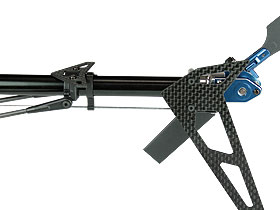 Hoop style horizontal fin mount with longer tail boom supports, effectively reducing tailboom vibrations. Carbon tail fins to emphasize the visually pleasing line |